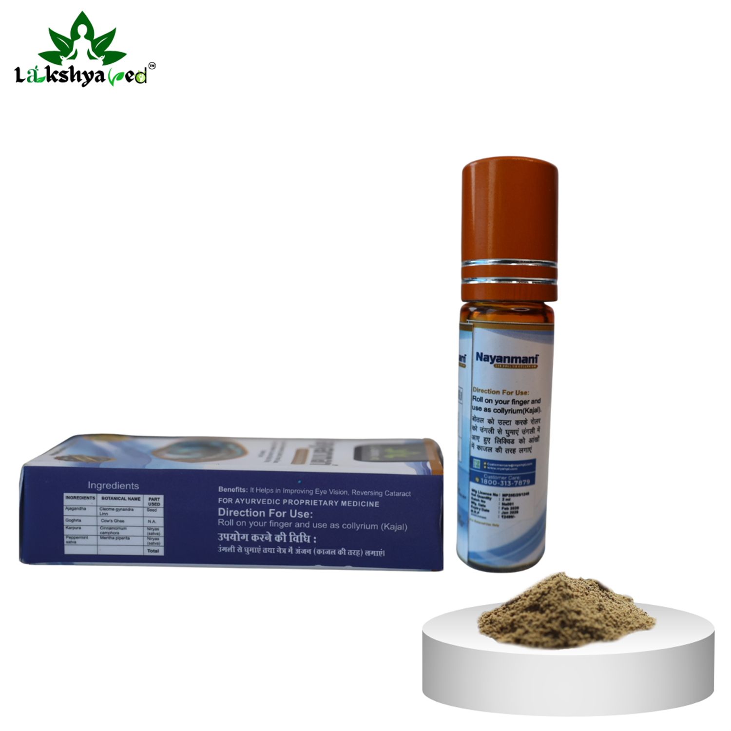 Method of Use: Turn the roller upside down by turning on bottle with finger put the oil in the eyes. Apply as a Kajal. Applied in the eyes 2 times in a day.